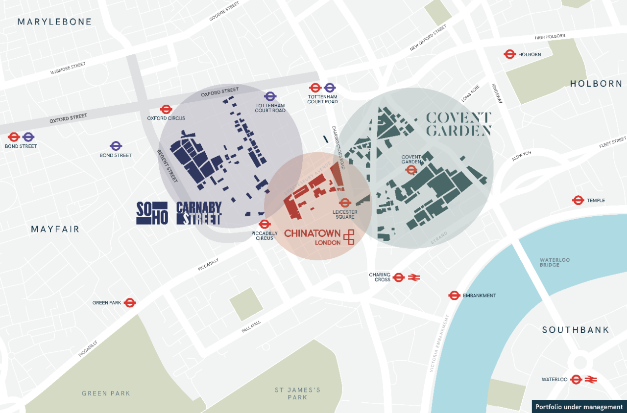 Our property portfolio, with £5.4 billion under management, extends to 2.8 million square feet across London’s West End.