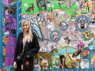 The 32ft long London themed mural, located on Little Marlborough Street, just off Carnaby Street, has been created by Kristjana to celebrate the history of Carnaby and will be launched on 24th November. Kristjana’s work is inspired by the natural world, and she uses Victorian engravings, ancient maps and antique prints which she layers with vibrant motifs, flora and fauna to bring her stories to life. The Carnaby Mural includes an aqua Thames sweeping through the city which has been overlaid with fascinating detail celebrating both London and the Carnaby district.